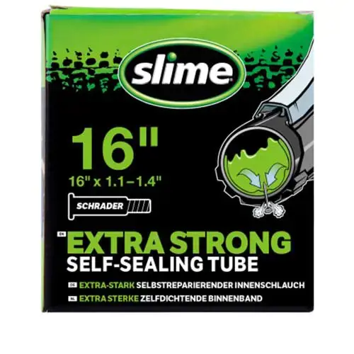 Fahrradschlauch 16 x 1.10 - 1.40 (28/35-349) Brompton, Slime Smart Tube - Pannensicherer Fahrradschlauch bereits gefüllt mit Slime Dichtmittel, AV - Autoventil 40 mm lang, Gewicht 185 Gramm.